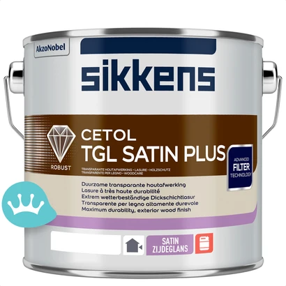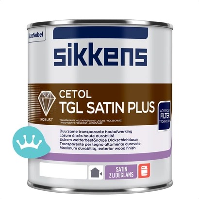 Elastische zijdeglans buitenlak. Sikkens Cetol TGL Satin Plus is perfect voor het transparant afwerken van hardhouten kozijnen en deuren (meranti, merbau) buiten. De transparante lak van Sikkens stoot vuil en water af en bevat een UV-filter waardoor vergrijzing wordt tegengegaan. Sikkens Cetol TGL Satin is verkrijgbaar in blank (kleurloos) en in diverse houtkleuren.